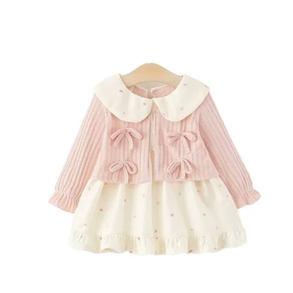 Girls’ Sweet Princess Dress for Kids Floral Bow Two-Piece with Lace Collar for Spring and Autumn Designed for Baby Girls