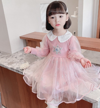 Pink Children’s Dress Girl Birthday Party High-grade Princess Dress Flower Design fairy Dreamy Western Style Tutu Skirt